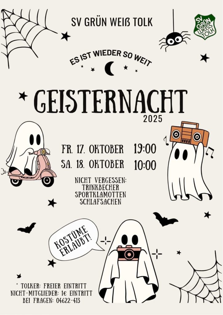 Wie seit vielen Jahren leiten wir in Tolk die Herbstferien mit der Geisternacht ein. 67 Kinder und Betreuer ließen in diesem Jahr die Turnhalle beben. Staffel- und Geschicklichkeitsspiele,…