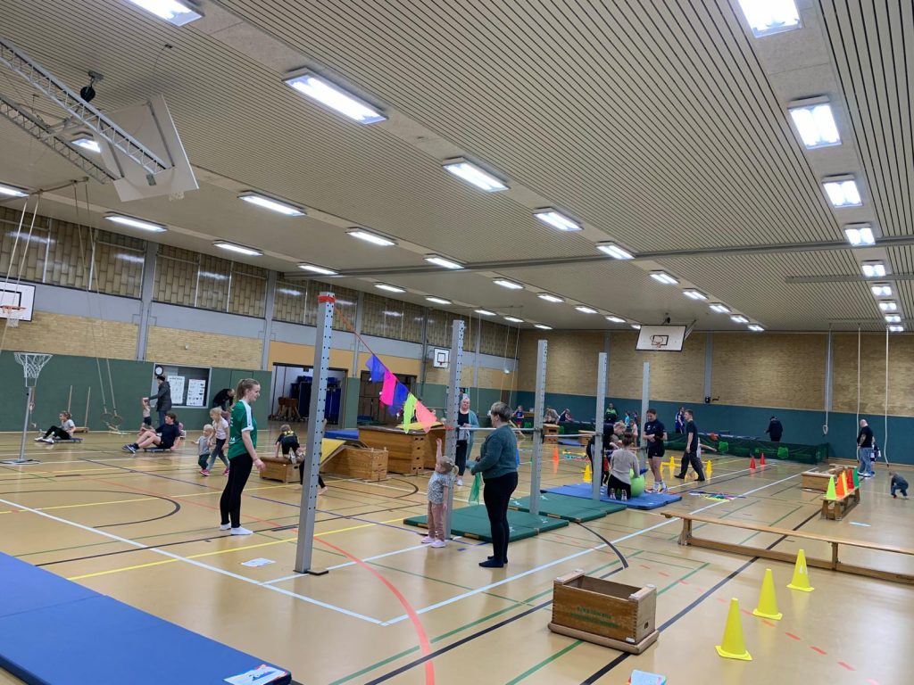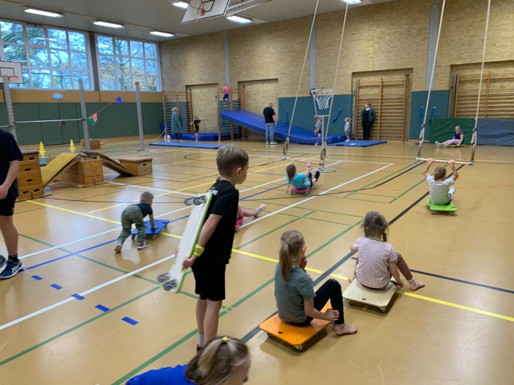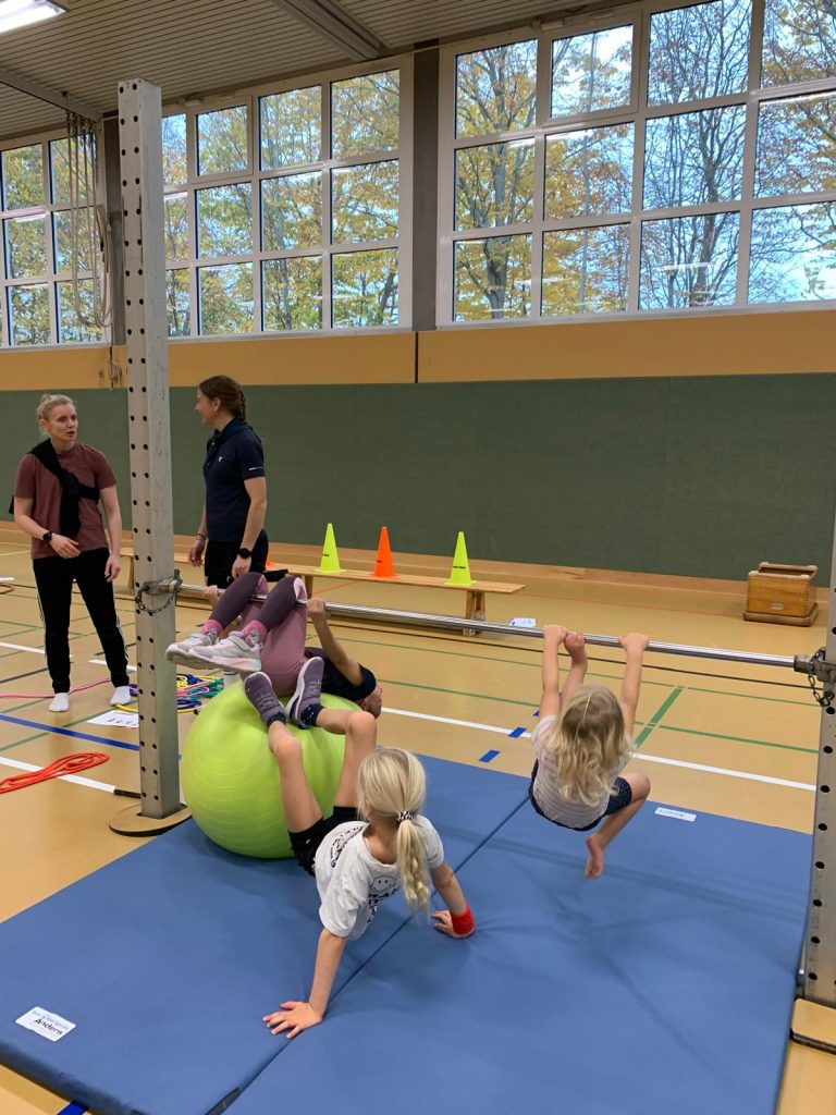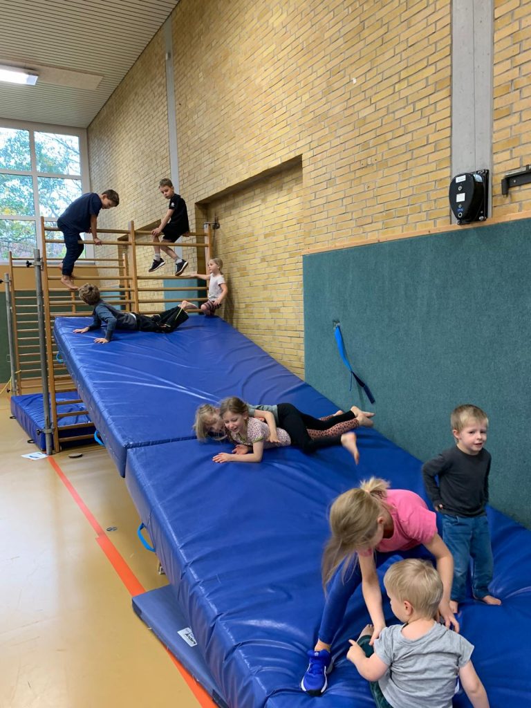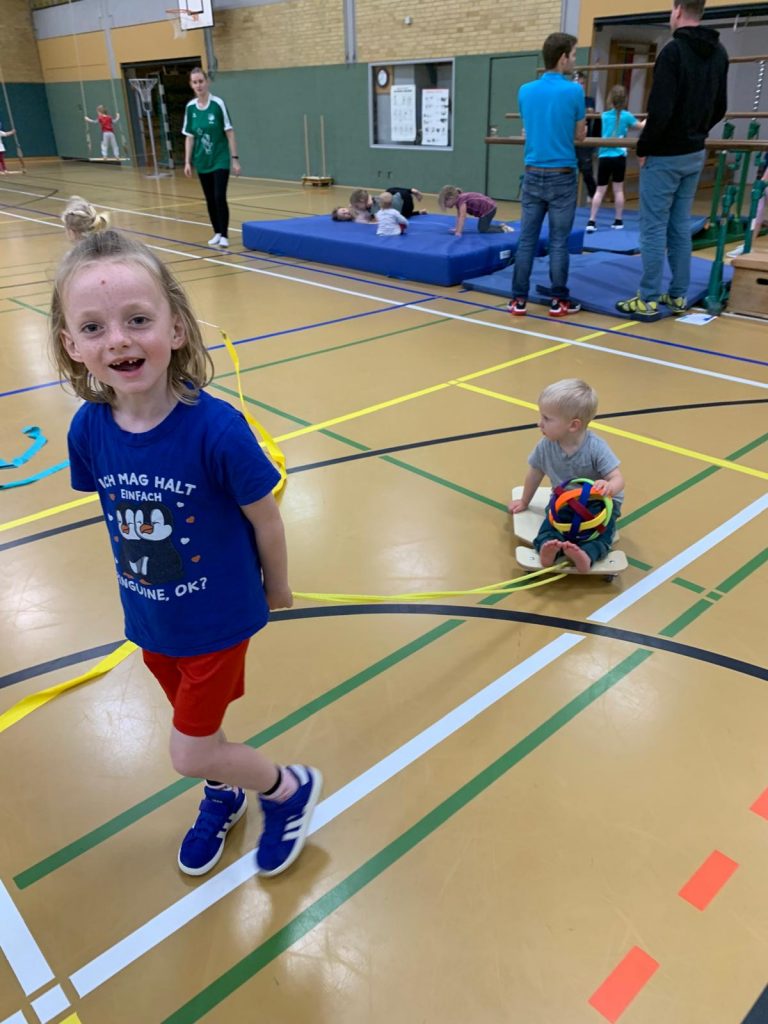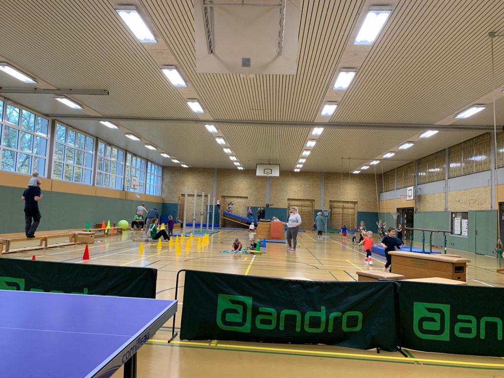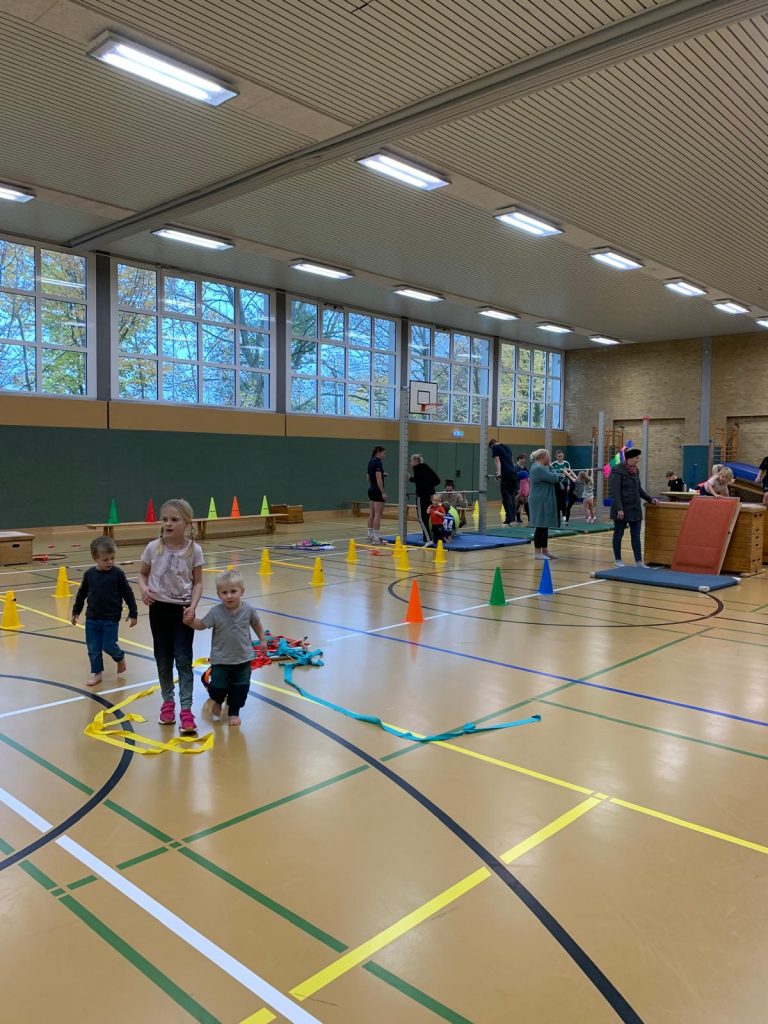 Am 8. November reisten wir einmal um die ganze Erde. Kinder – Joy of moving und der Deutsche Turnerbund hatten wieder zum Tag des Kinderturnens eingeladen. Unter dem Motto „Tierische Turn-Weltreise“ konnten alle Kinder zum Beispiel als Äffchen in Afrika herumklettern oder als Giraffen ihre Hälse recken, als Robben umherrobben oder als Eisbären in der Arktis über Eisschollen springen, als Maulwurf in Europa blind kleine Säckchen in Reifen werfen, als Koalabären in Asien an Eukalyptusbäumen hängen oder als Blattschneiderameisen über wackelige Baumstämme laufen. Jeder Erdteil war mit mehreren Tieren vertreten. Dank meiner lieben Helfer konnten wir in kürzester Zeit die Turnhalle in eine riesige Turnlandschaft verwandeln. 60 Kinder und viele Erwachsene nutzten dieses wunderbare Angebot.